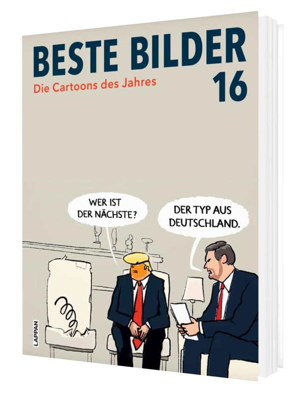 Das Buch „Beste Bilder 16“ mit Cartoons der Gewinner und weiteren tollen Künstler*innen ist ab sofort überall im Handel erhältlich.