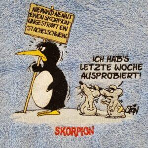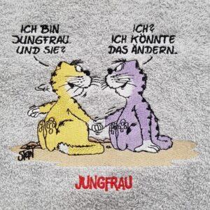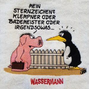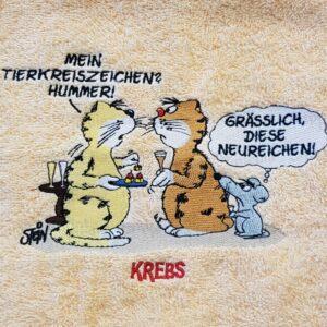 Ein echter Hingucker am Strand sind die neuen Sternzeichen-Dusch- und Handtücher mit witzigen Cartoons von Uli Stein.