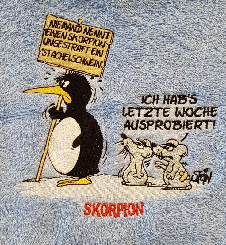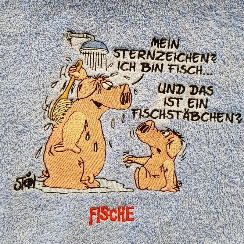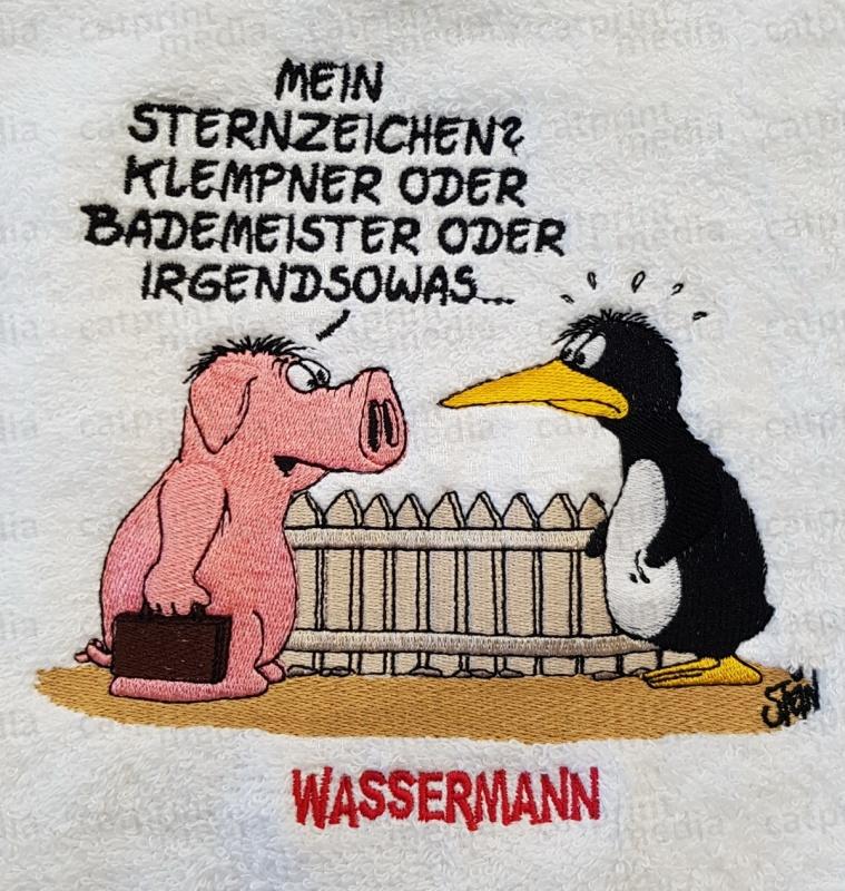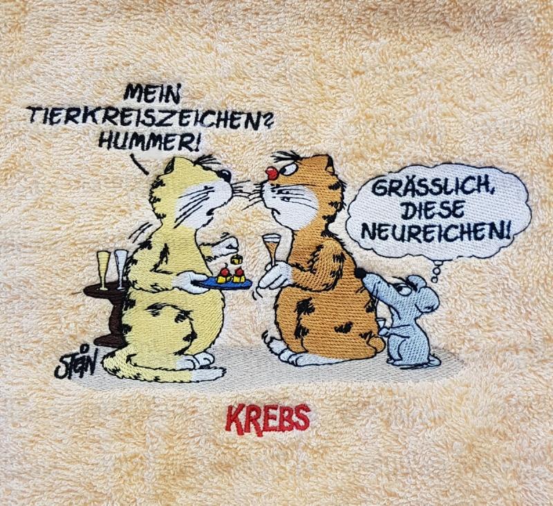 Ein echter Hingucker am Strand sind die neuen Sternzeichen-Dusch- und Handtücher mit witzigen Cartoons von Uli Stein.