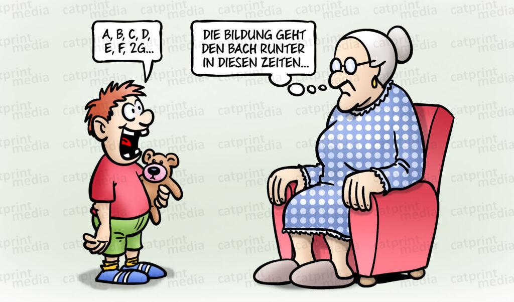 Künstler: Harm Bengen Artikelnummer: 142967 Kategorie: Schule Schlagwörter: oma, enkel, Kind, bildung, schüler, ABC, corona, 2g