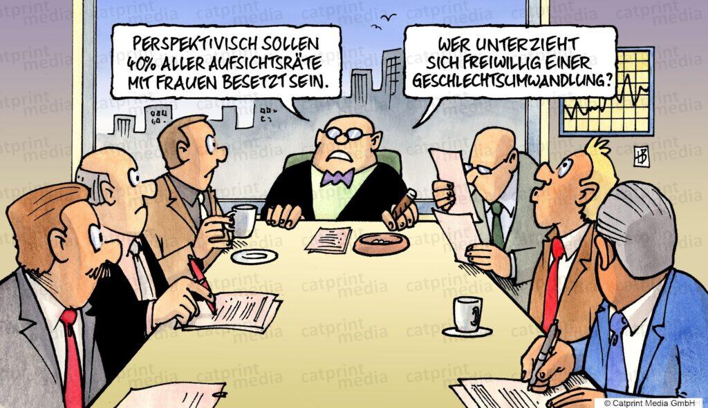 Künstler: Harm Bengen Artikelnummer: 12-7360 Kategorien: Beruf, Frauen, Männer, Wirtschaft Schlagwörter: frauen, männer, geschlechtsumwandlung, frauenquote, Aufsichtsrat
