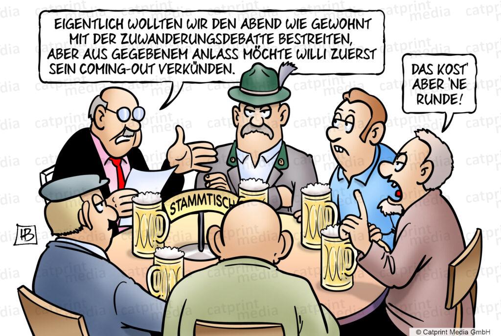 Künstler: Harm Bengen Artikelnummer: 12-20587 Kategorie: Medien, Zeitung, Nachrichten Schlagwörter: out, Stammtisch, coming, Zuwanderungsdebatte
